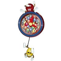 Got this clock for my husband, who collects M&Ms thingies. He really likes it. It's bright and colorful and does actually talk on the hour, even if the voices are a bit loud and a little mechanical sounding but then again, these are M&Ms we're talking about, not humans. It's a cute clock and I'm glad I bought it.The clock is very cute, and the swinging M&M works well. However, the hands do not stand out very well against the background, making it difficult to tell the time. I'm considering taking it apart to outline the hands, or painting the hands black.Thank goodness my son is happy with it. We had a hard time getting the pendulum to work and the chimes won't work unless you push the button..they don't go off on the hr like it's suppose to. any ideas??
